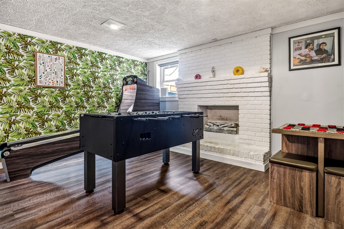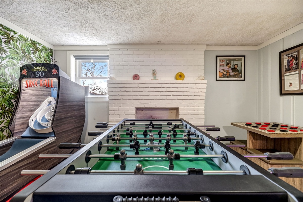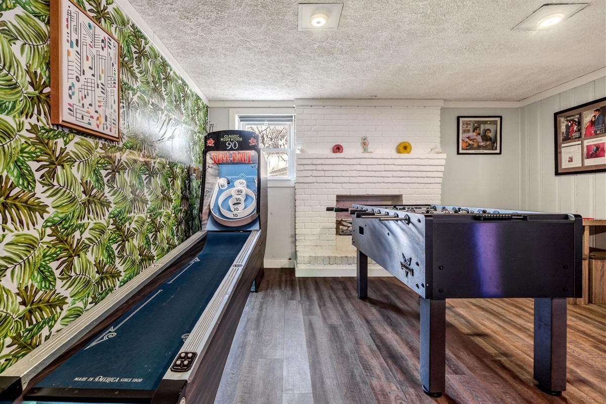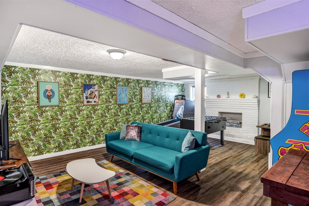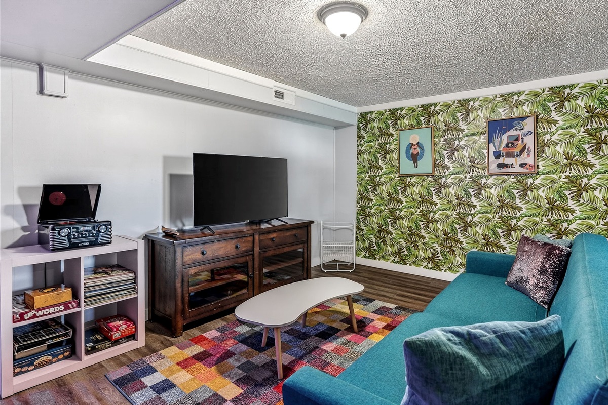 Entertainment galore: record player, classic Nintendo, board games, yard games