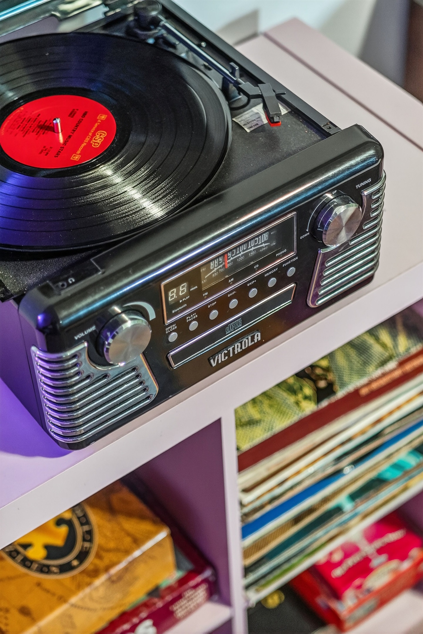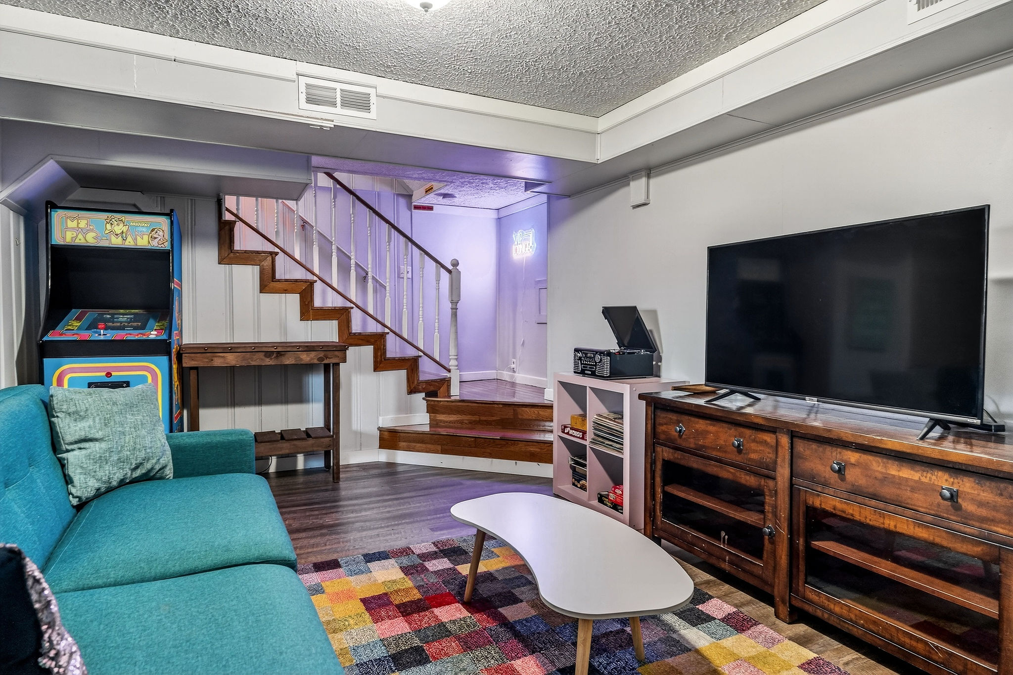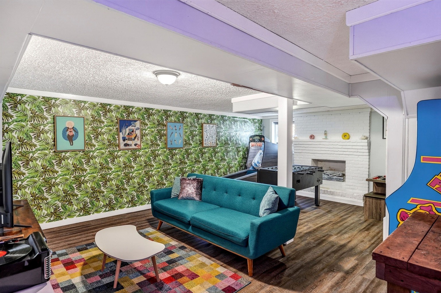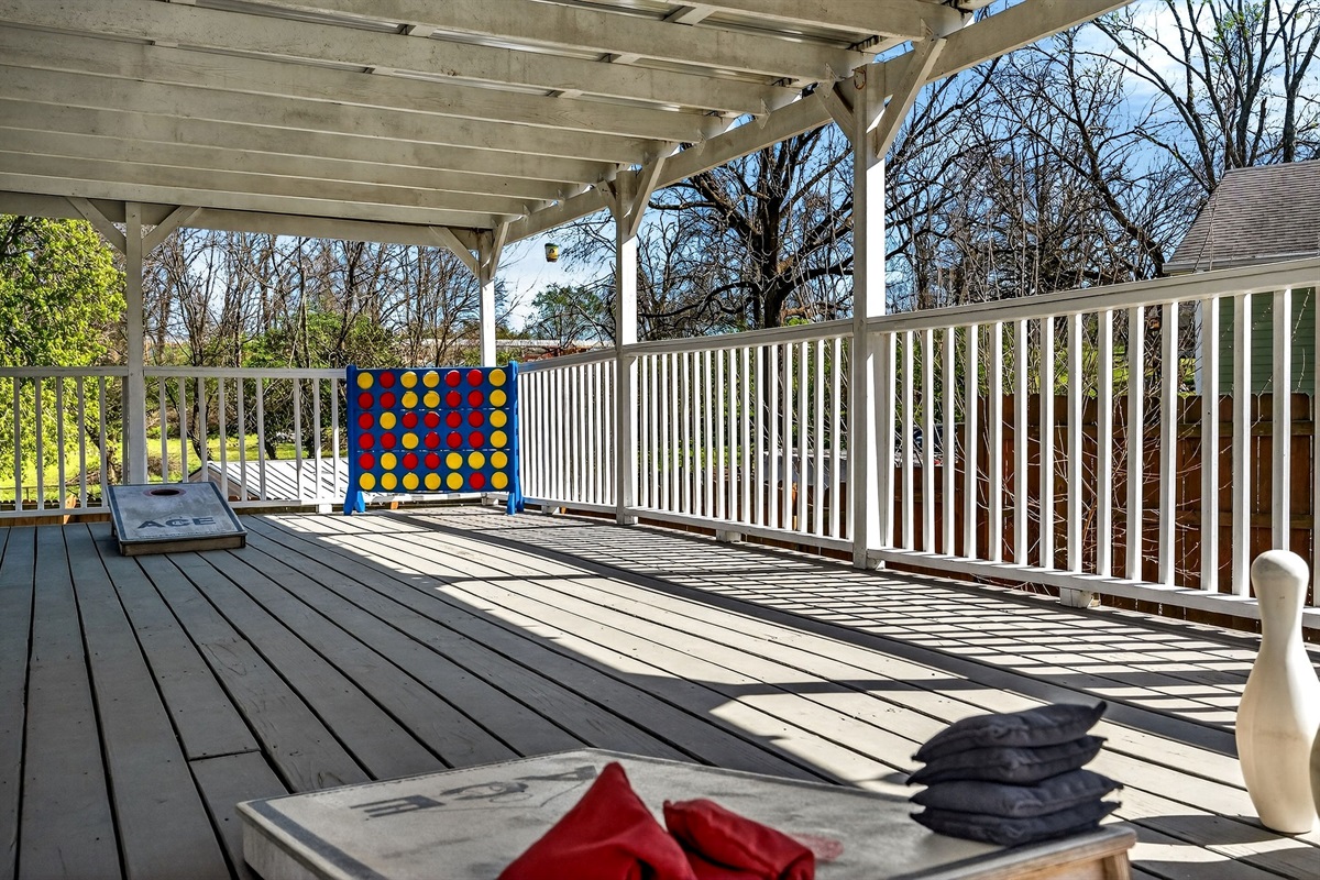 Entertainment galore: record player, classic Nintendo, board games, yard games