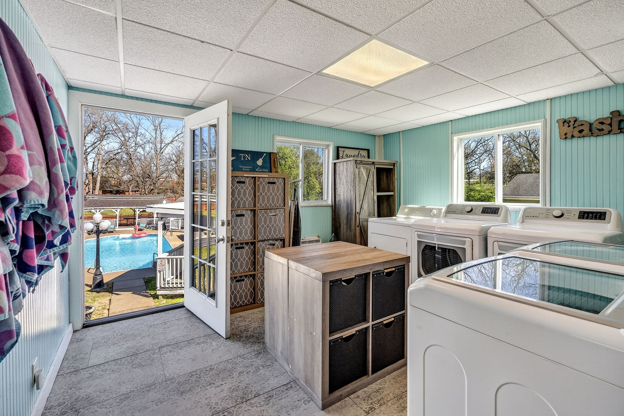 Fully equipped laundry room with detergent provided