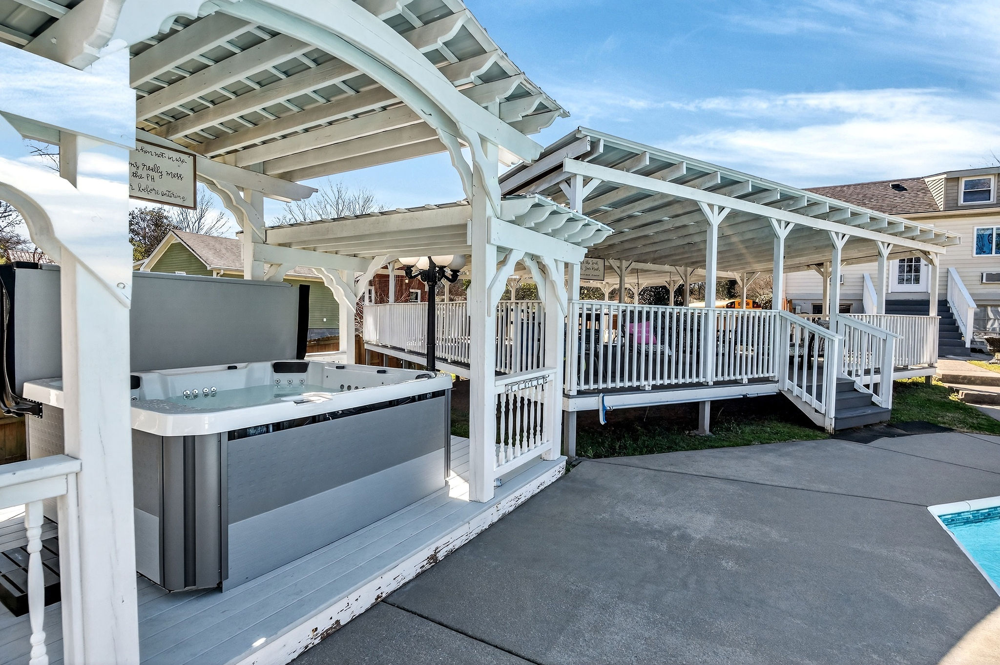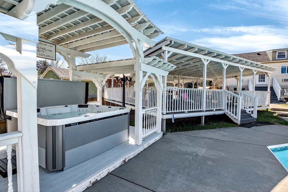 Sparkling saltwater pool and a 12-person hot tub